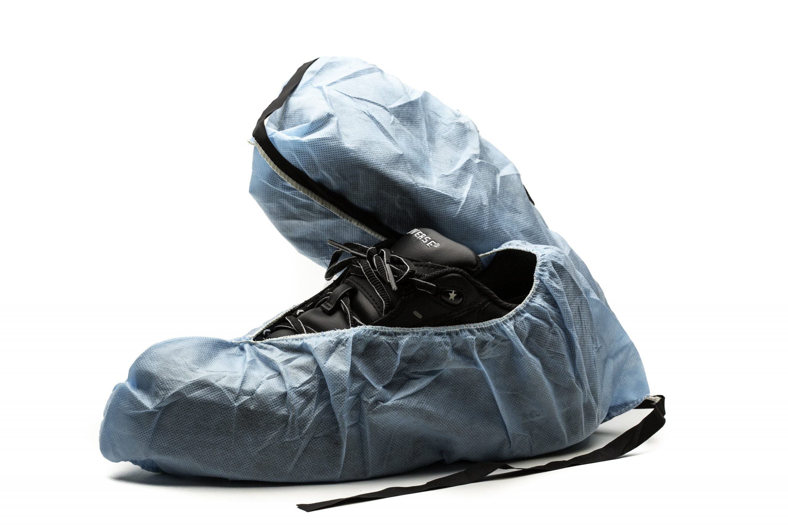 Polypropylene shoe covers are made of 100% spun-bond polypropylene. This non-woven fabric helps filter particles for contamination control in critical environments. The regular sole shoe covers are available in universal or extra large sizes with comfortable elastic ankles to fit over most shoes. Skid-free soles are available for greater traction and improved safety. Covers with conductive strips are also available for static sensitive applications. Conductive strip covers heel only. Package includes 150 pairs (300 individual) per case.